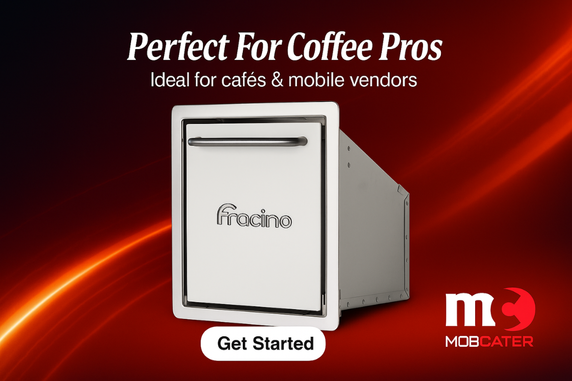 - Compact tilt design — perfect for small cafés, kiosks, and mobile coffee setups
