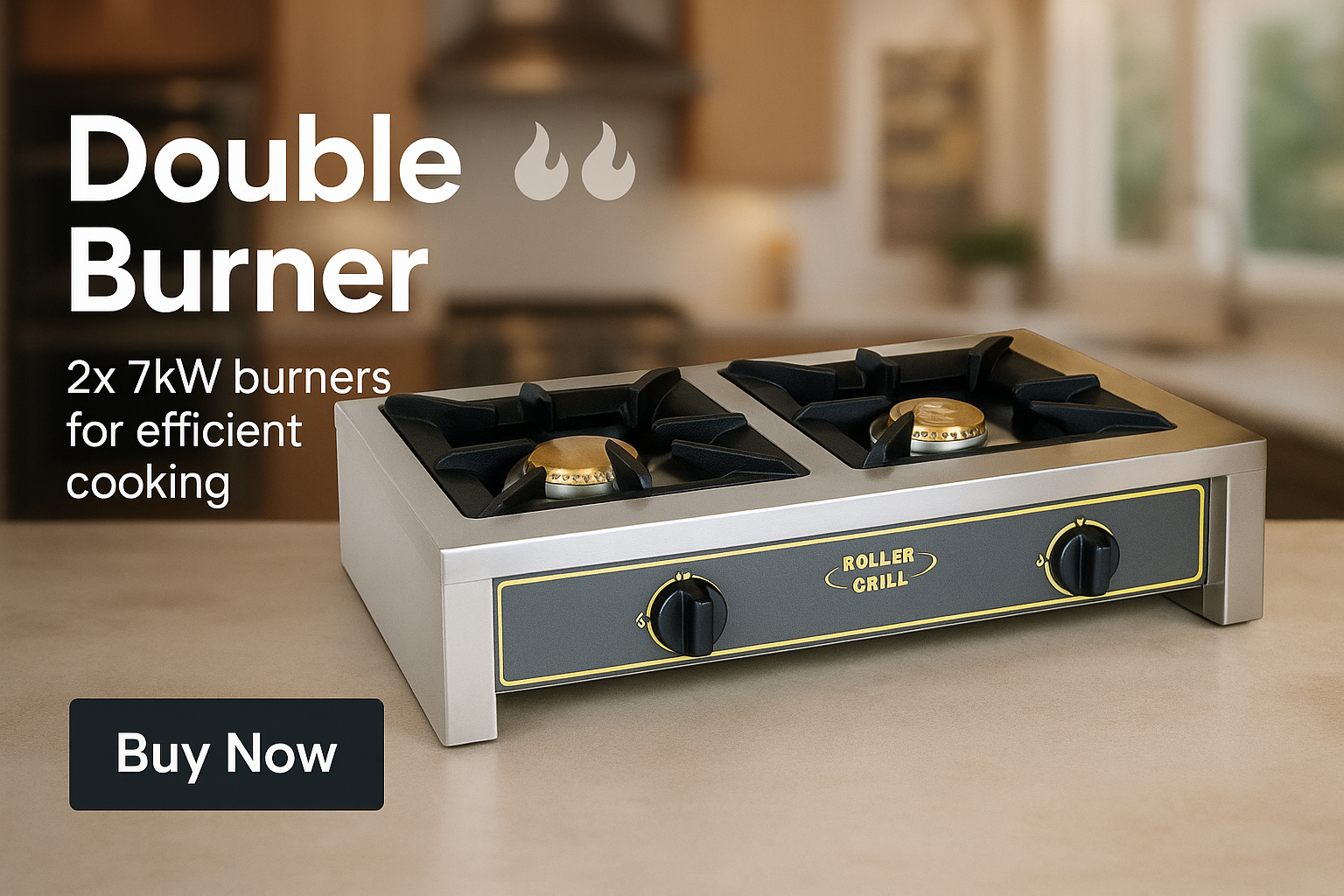 The Roller Grill GAR 14 is a high-performance double burner gas stove designed for professional kitchens, bakeries, food trucks, and mobile catering units. With two powerful 7kW burners, independent controls, and Piezo ignition, it delivers reliable cooking, reheating, and warming for all types of culinary preparations.